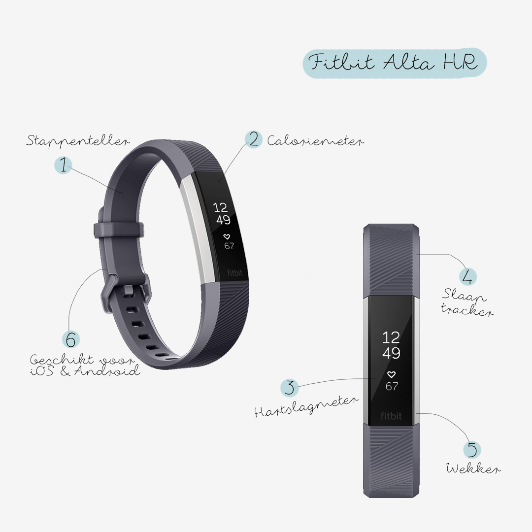 Wat heeft deze Fitbit allemaal in huis? Nou, best veel! Het is natuurlijk een stappenteller waarbij je de statistieken kunt terugvinden in de app van Fitbit. Deze app is trouwens erg uitgebreid en leuk om bij te houden. Daarbij geeft het horloge elk uur een seintje als je te weinig beweegt, toont hij berichten van je telefoon op het scherm, kun je een wekker instellen en meet hij naast je stappen ook je calorieën, hartslag en slaapritme. Al deze functies kun je uiteraard ook allemaal uitzetten zodat je alleen een klok op je horloge ziet.